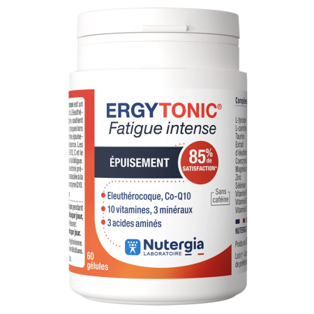 Le rythme effréné du quotidien, les périodes d’examens ou les pics d'activité professionnelle peuvent mener à un épuisement généralisé. ERGYTONIC est un complément alimentaire de haute qualité conçu par le laboratoire Nutergia pour revitaliser l'organisme et booster les performances cognitives lors de phases de fatigue intense.